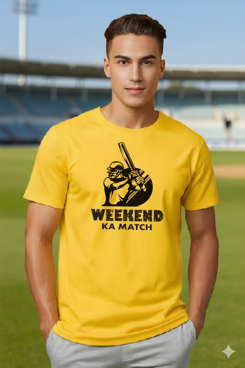 Upgrade your casual wardrobe with the Salukful Classic Crew T-Shirt, designed for true weekend lovers who live for chill vibes and match days. Featuring the fun and relatable quote “Weekend Ka Match”, this t-shirt is perfect for cricket fans, football lovers, and anyone who knows weekends are meant for matches, friends, and relaxation.